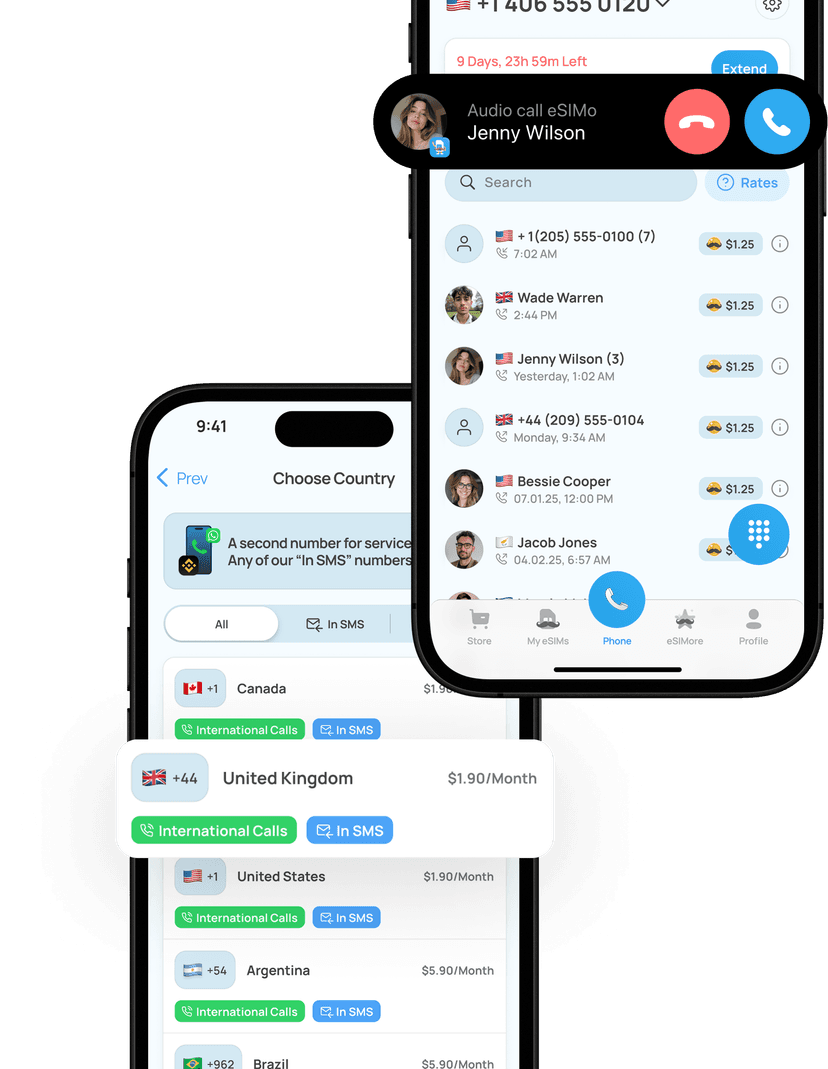 Faça chamadas internacionais e obtenha um segundo número em segundos com a eSIMo !